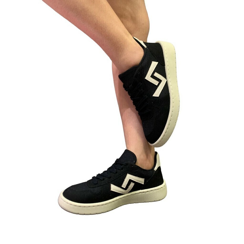 Preto - Camurça, Nylon forrado na cor Preto e detalhe Branco na lateral e traseiro.