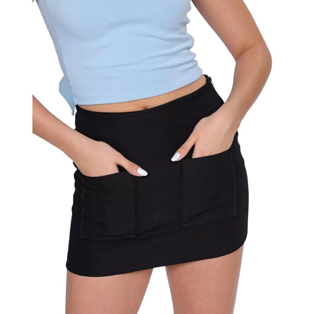 Short Saia Bolso Quadrado Preto Fashion Girl 52692
