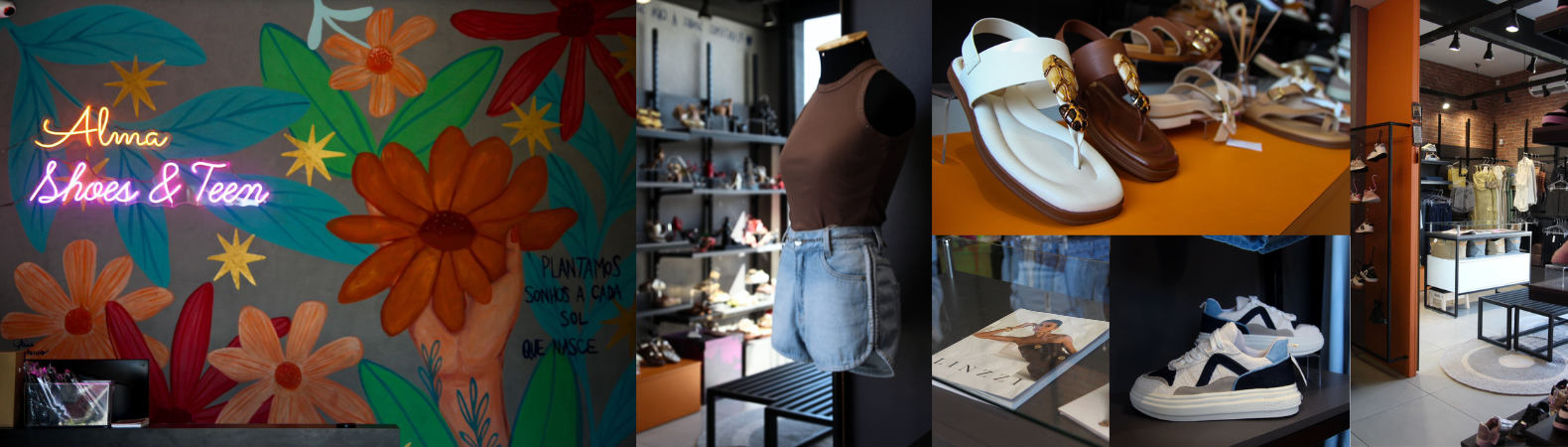 A Alma Shoes & Teen nasceu da união de duas marcas que já faziam parte da vida de muitos clientes: Alma Teen, especializada em roupas com estilo jovem e autêntico, e Alma Shoes, referência em calçados que aliam conforto e personalidade.